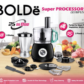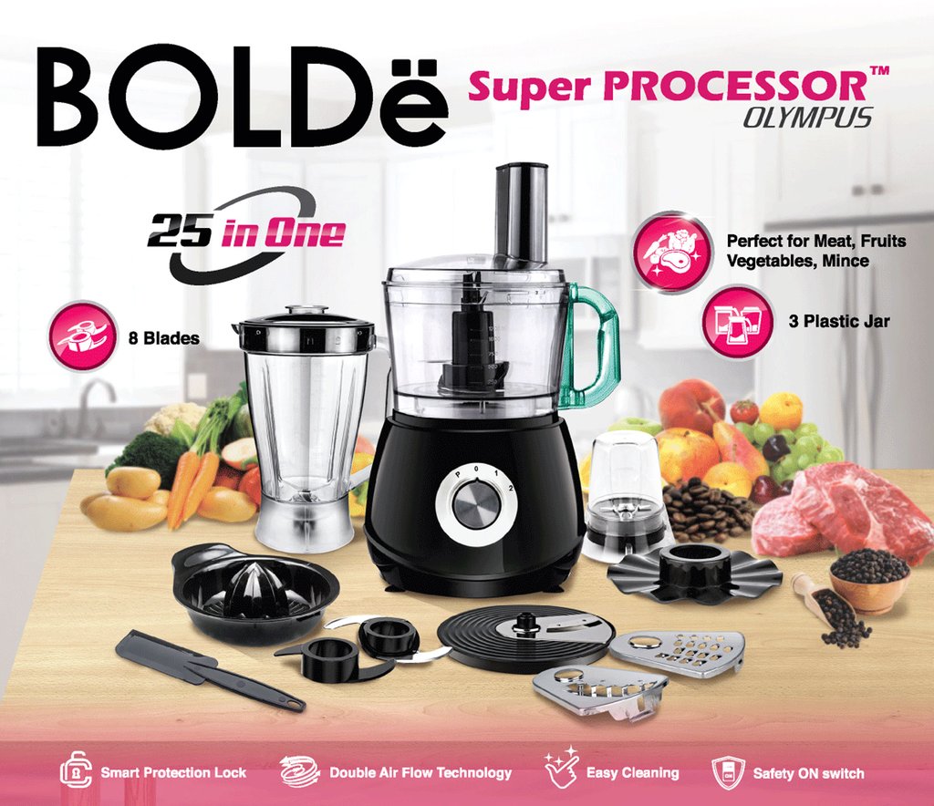 Produk food processor multifungsi dengan 3 gelas plastik dan 8 pisau dengan kapasitas hingga 1.7 Liter dengan tenaga pemakaian yang hanya 700 watt.